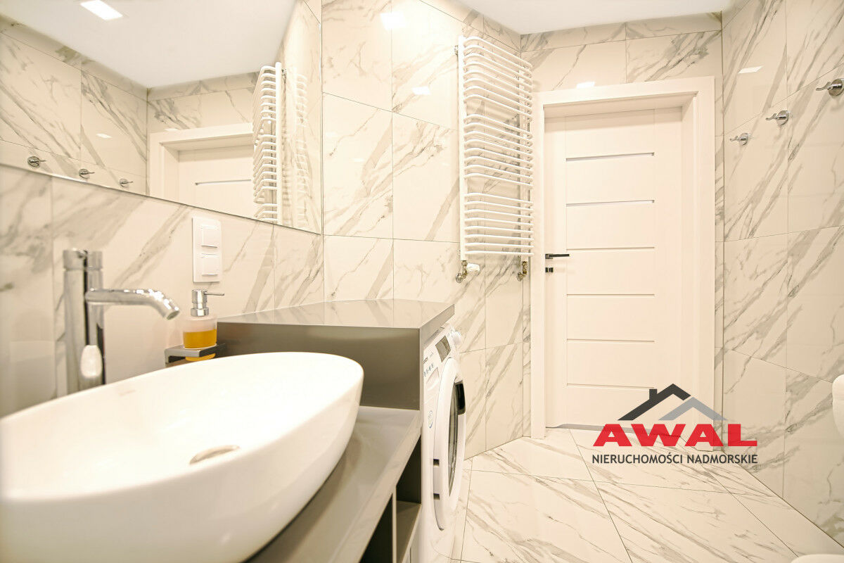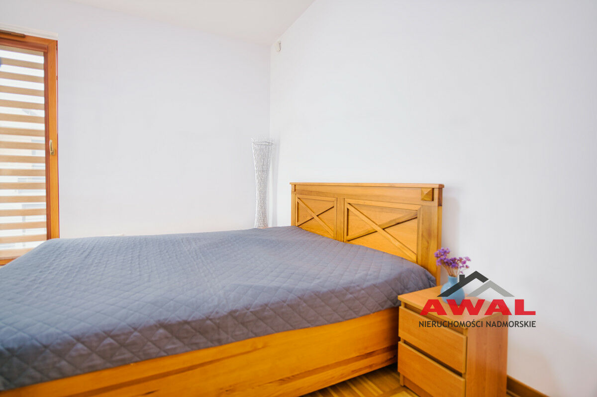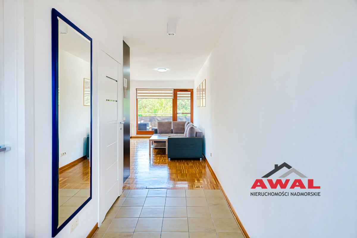 Wyjątkowy, doskonale zlokalizowany apartament w nadmorskim kompleksie „Helska Willa”Nowoczesne staranie wykończone mieszkanie o powierzchni 53,5 m² (zgodnie z KW 53,53 m²), składa się z dwóch pokoi oraz łazienki. Centralne miejsce apartamentu stanowi przestronny salon zintegrowany z aneksem kuchennym oraz strefą przedpokoju. Salon doskonale doświetlony przez jednopołaciowe okno oraz drzwi balkonowe (łączny wymiar 2,65 x 2,10 m). Aneks kuchenny również jasny, z trzema oknami, podobnie przedpokój, doświetlony oknem typu francuskiego. Z salonu wyjście na balkon z widokiem na las Nadmorskiego Parku Krajobrazowego od strony Morza Bałtyckiego.