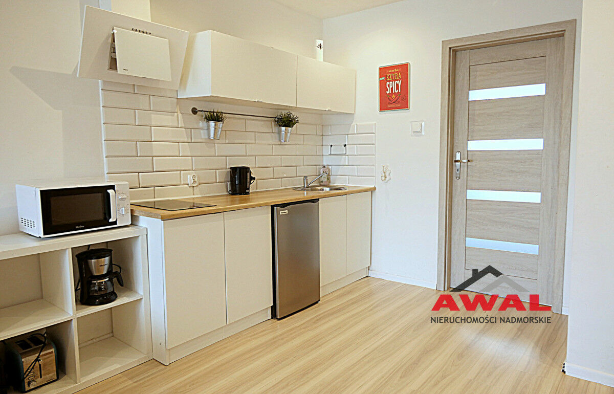 Nieruchomość w pełni wyposażona i przygotowana do zamieszkania lub wynajmu: lodówka, płyta indukcyjna, kuchenka mikrofalowa, ekspres do kawy, pralka, telewizor, Internet bezprzewodowy.